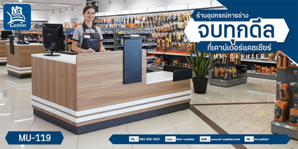 เคาน์เตอร์คิดเงินที่เหมาะกับร้านวัสดุ ต้องรุ่น MU-117 เลยค่ะเพราะระดับความสูงที่พอดี ทำให้การใช้งานสะดวกขึ้นทั้งผู้ซื้อและผู้ขาย ไม่ต้องยืนปวดหลังนานๆ และยังมาพร้อมกับฟังก์ชั่นการใช้งานที่ออกแบบมาให้เหมาะสมกับธุระกิจของคุณแน่นอนค่ะ