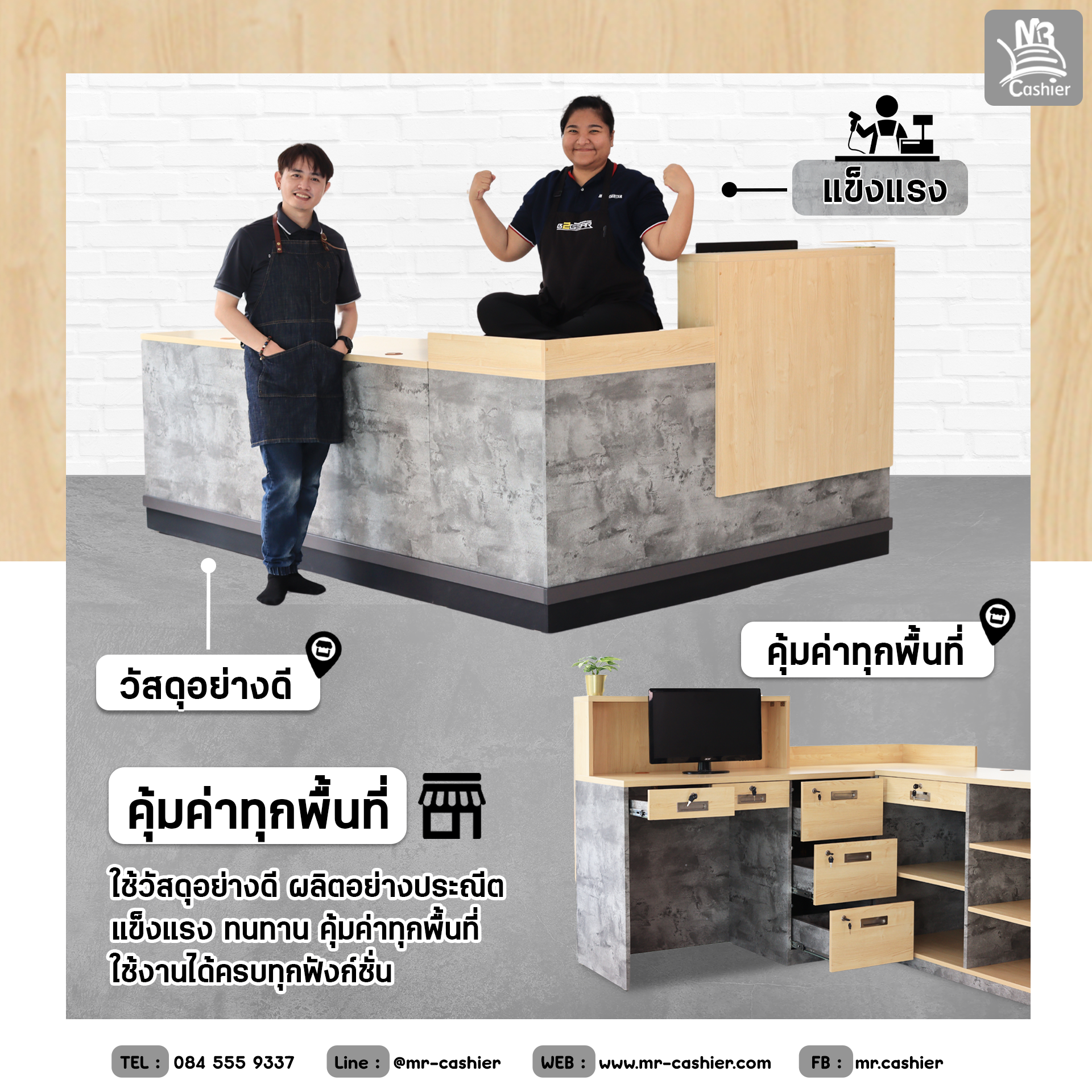 เคาน์เตอร์คิดเงินที่เหมาะกับร้านวัสดุ ต้องรุ่น MU-117 เลยค่ะเพราะระดับความสูงที่พอดี ทำให้การใช้งานสะดวกขึ้นทั้งผู้ซื้อและผู้ขาย ไม่ต้องยืนปวดหลังนานๆ และยังมาพร้อมกับฟังก์ชั่นการใช้งานที่ออกแบบมาให้เหมาะสมกับธุระกิจของคุณแน่นอนค่ะ