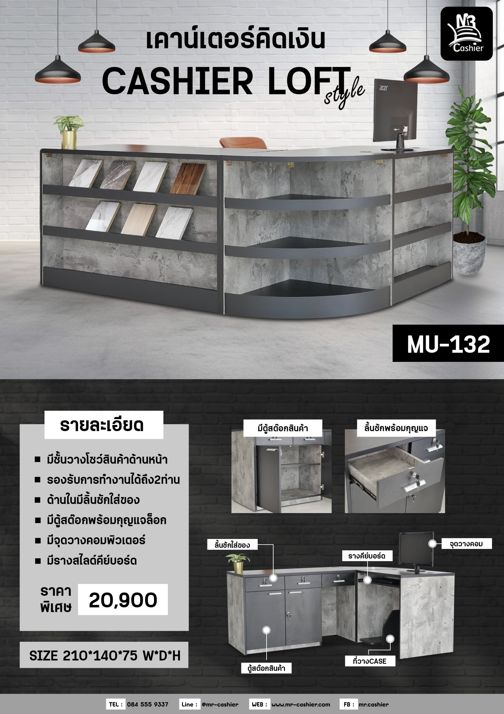 เคาน์เตอร์คิดเงินแคชเชียร์ มีชั้นโชว์สินค้า